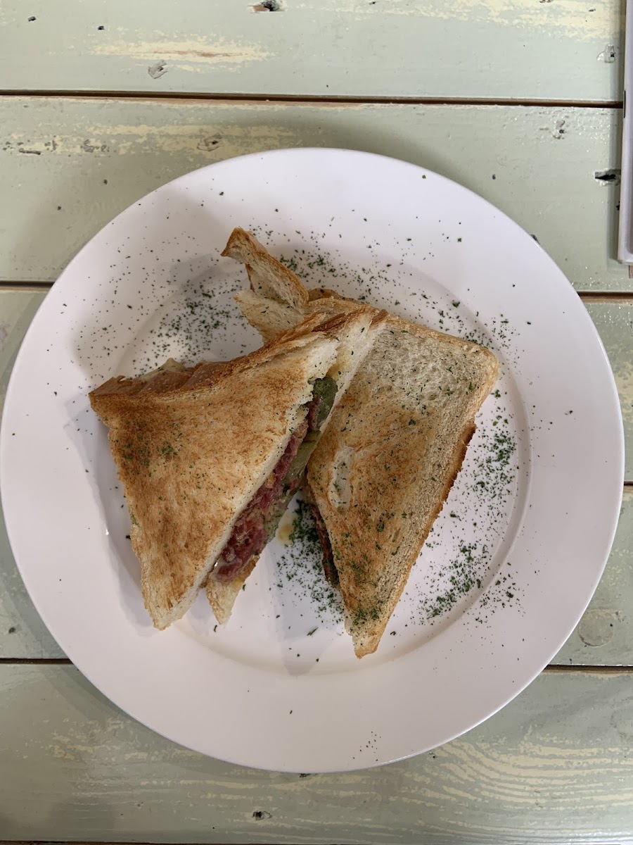 The food menu complements the drinks well, with items that cover all-day breakfast, sandwiches, and pastas that have drawn positive attention. The salted beef sandwich comes highly regarded—tender, flaky, and well-seasoned, served on toasted bread with baby pickles and mayo, making for a satisfying but not over-the-top meal. Pasta choices like salmon aglio olio and alfredo offer heartier options, balancing comfort with local flavor preferences.